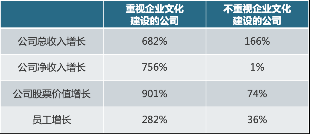 约翰·科特教授与其研究小组,用了11年时间,对企业文化对企业经营业绩的影响力进行研究,结果证明: