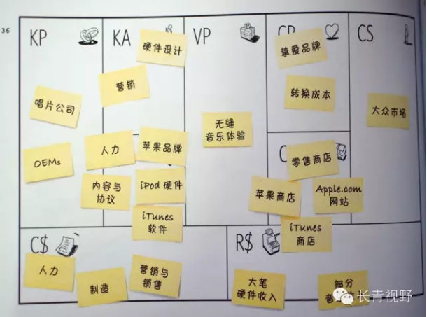 以苹果iPod/iTunes商业模式为例,高林世纪运用商业模式画布将该商业模式描述如下(图一)。通过商业模式画布,我们可以清晰地看到苹果通过其特殊设计的iPod设备、iTunes软件和iTunes在线商店的结合,为用户提供了无缝的音乐体验。苹果通过销售iPod赚取了大量与音乐相关的收入,同时利用iPod设备与在线商店的整合,有效地将竞争对手挡在了门外。